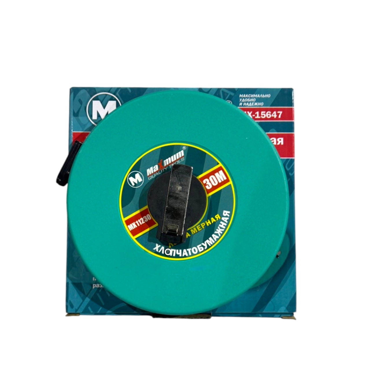 Лента рулетки из ПВХ помещена в закрытый круглый корпус из ударопрочного пластика и имеет складывающуюся катушечную ручку.